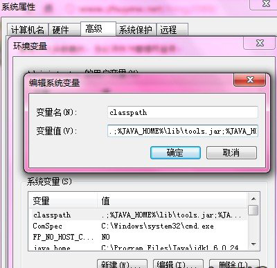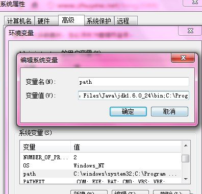 然后再打开原有的系统变量Path,在Path中添加JDK文件目录下的bin目录我的路径为C:\Program Files\Java\jdk1.6.0_24\bin,如图